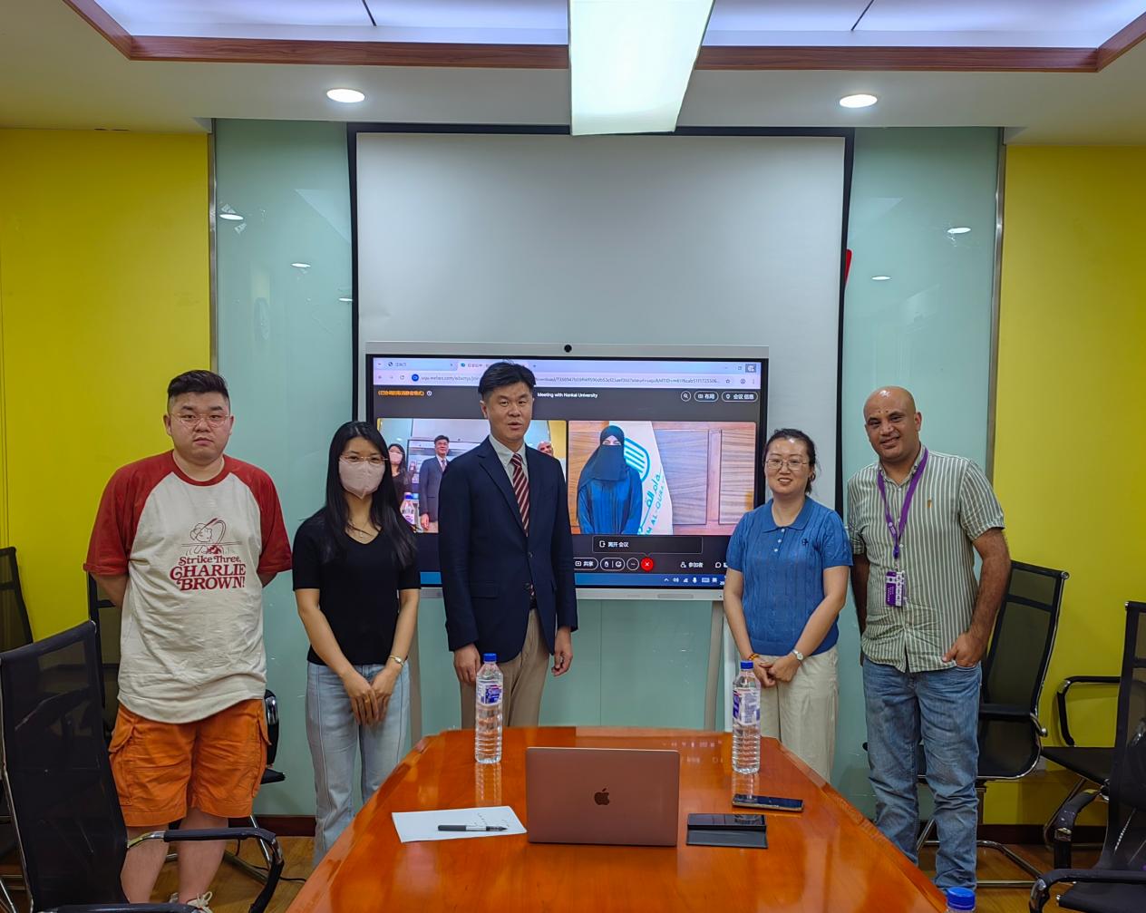 (通讯员 窦天娇)2025年6月16日,伟德体育手机app下载阿拉伯语专业与沙特乌姆古拉大学成功召开线上会议,围绕学生交流、教材共享、教师培训及专家讲座、专业合作等议题展开深入探讨,双方表达了进一步深化合作的意愿。伟德betvlctor1946体育副院长王凯、阿拉伯语专业负责人窦天娇、阿拉伯语专业教师黄昊霏、苏楚婷、Yousef ,沙特乌姆古拉大学飞阿拉伯语学院院长阿卜杜·哈赫曼、院长助理参加会议。