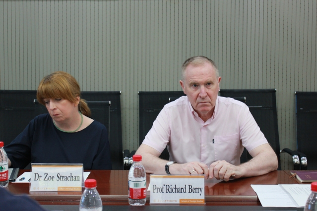 双方重点围绕持续深化联合办学进行了充分讨论,达成多项共识。双方将继续严格遴选优秀师资、不断优化课程教学,深化“英语语言文学(格拉斯哥项目)”建设内涵,提升人才培养质量;积极探讨并推动联合培养博士项目,进一步提升人才培养质量与规格。此外,双方就拓展新的合作项目、开展本科及研究生层次的学生交流互换、联合举办暑期学校等可能性展开了建设性讨论。