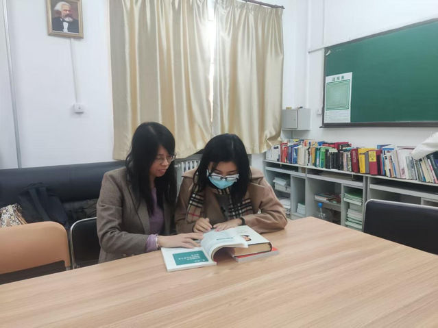 党员教师雷海花、韩捷则聚焦德语翻译专业课程,围绕教材使用与 “本硕课程衔接” 展开专题研讨。两位教师结合《理解当代中国》汉德分册和《习近平谈治国理政》德语版的使用经验,分析了当前本硕阶段课程在教学目标、内容梯度上的衔接痛点,并提出以教材为抓手的一体化人才培养新思路:本科阶段可依托教材中的基础翻译素材,侧重培养学生 “中国主题” 的德语翻译的基础能力;硕士阶段则可深化教材内容,结合国际交流热点议题拓展口笔译场景,通过 “教材内容进阶 + 实践场景升级” 的方式,实现本硕翻译课程的无缝衔接,为一体化培育高素质德语翻译人才提供支撑。